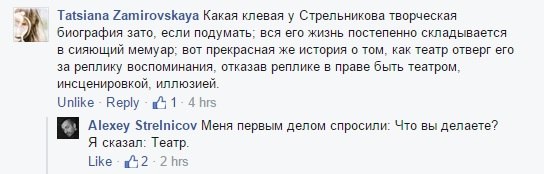 It seems to me that the main function that an independent underground theater now performs is to create a space free of ideological, propaganda narratives in which we all constantly find ourselves." (A.Strelnikov)